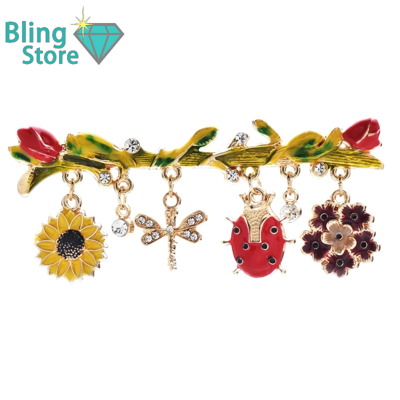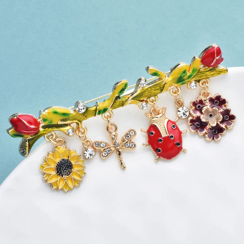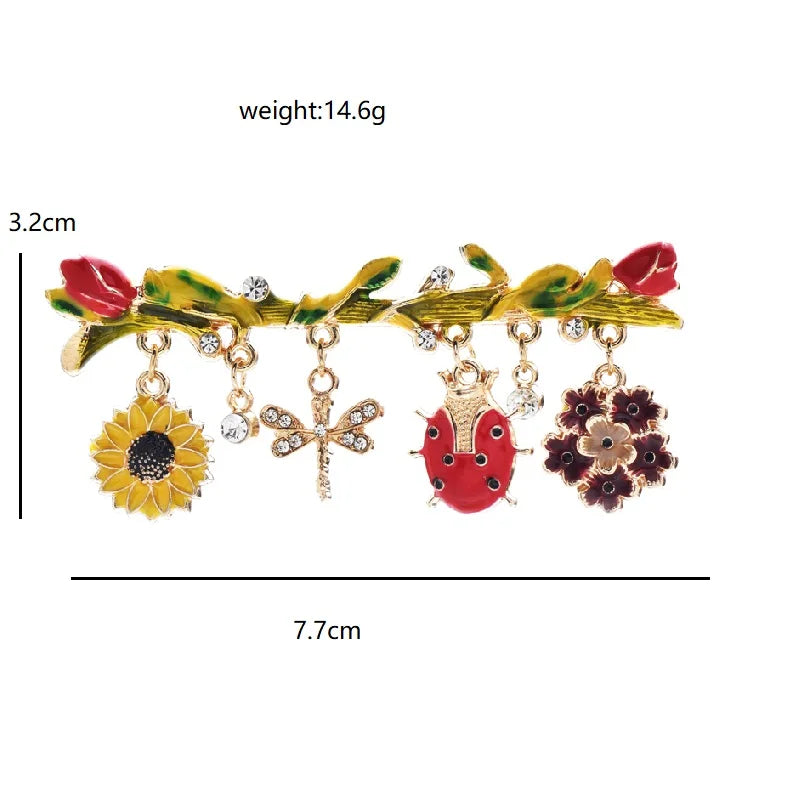 Broche met Insecten en Bloemen – Franse Stijl Emaille Speld voor Dames