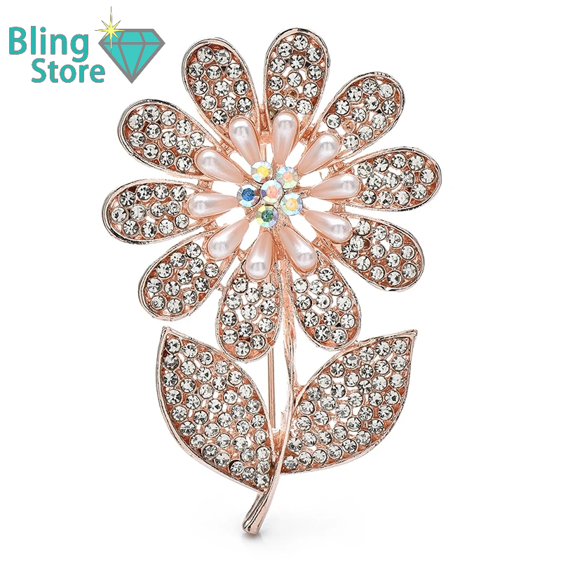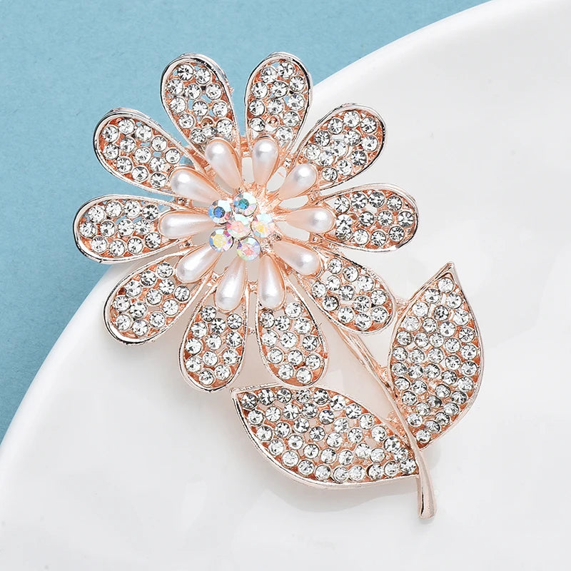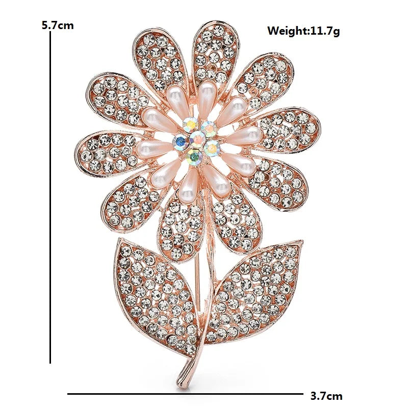 Broche met Parel en Strass – Zonnebloem Design voor Vrouwen & Unisex
