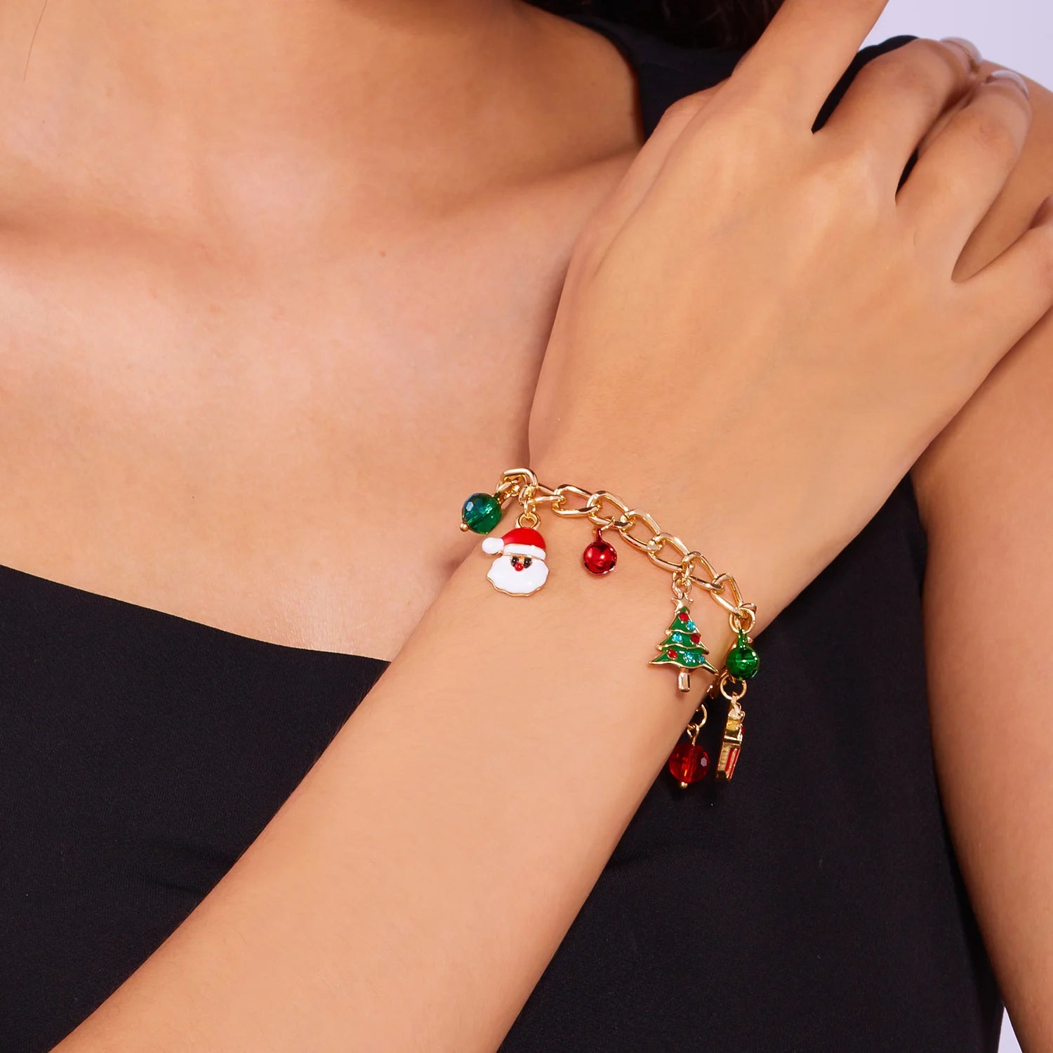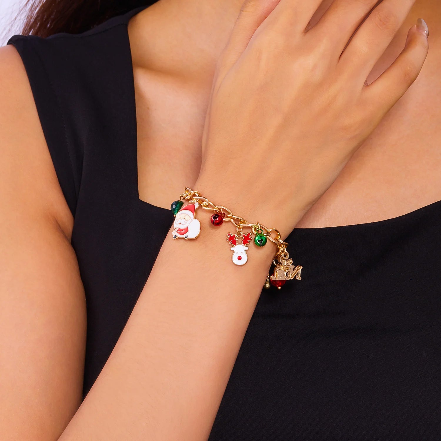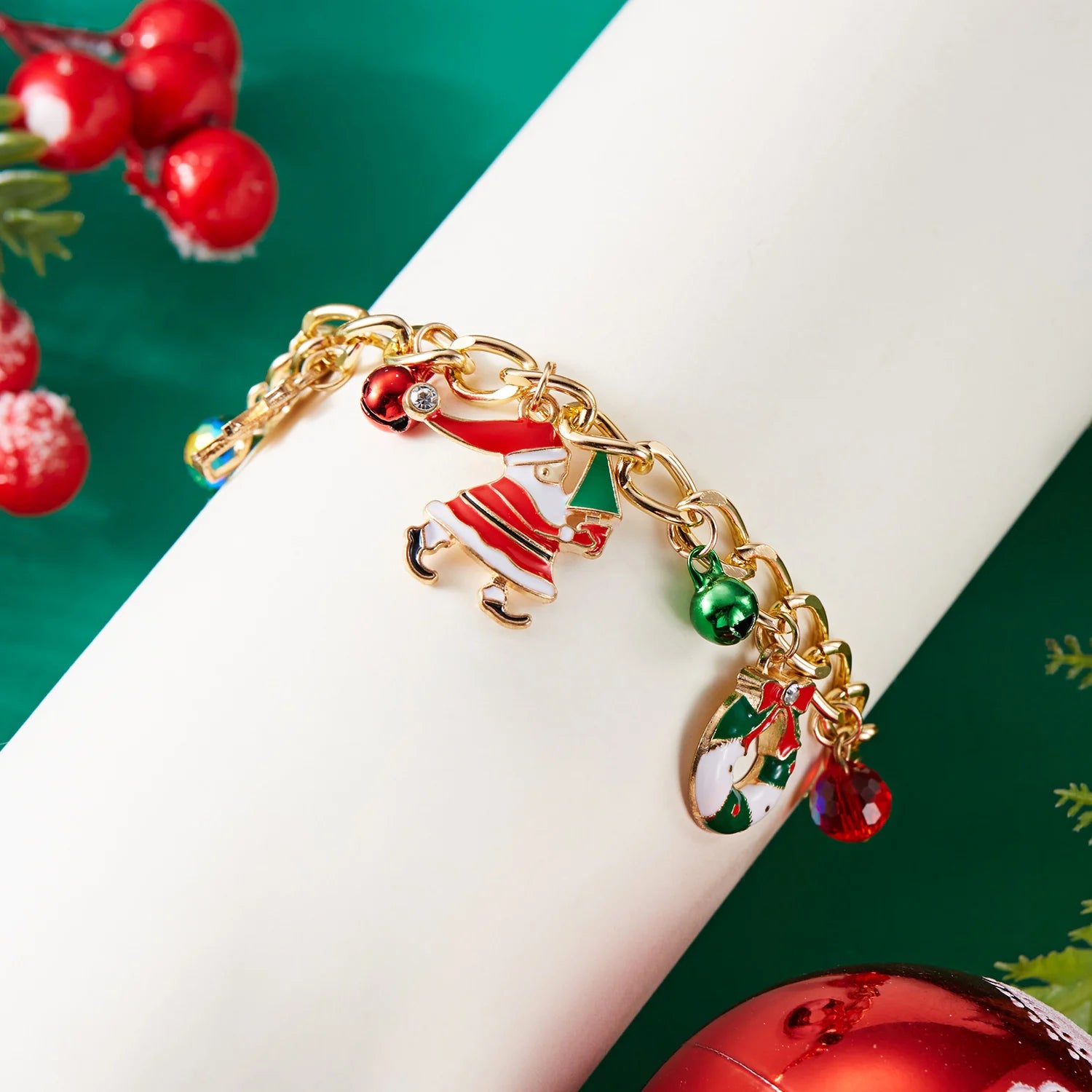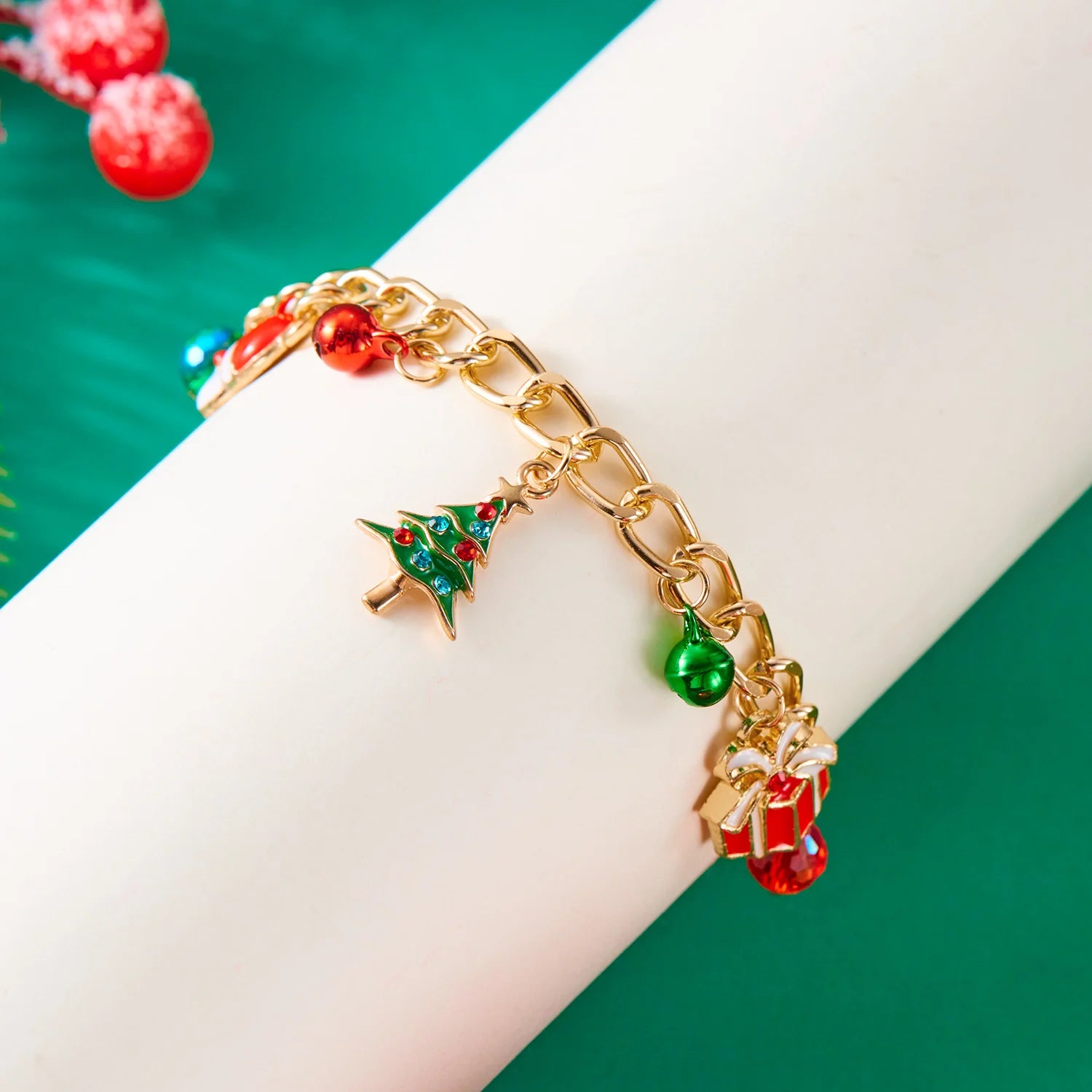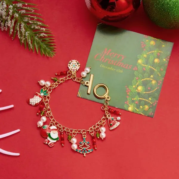 Deze stijlvolle kerst armband geeft elke outfit een vrolijke en feestelijke uitstraling. Met charmante details zoals een kerstboom, sneeuwvlok, kerstman en speelse belletjes, straalt dit sieraad de magie van de feestdagen uit. Ideaal om te dragen tijdens een kerstborrel, familiefeest of een gezellige winteravond met vrienden.
