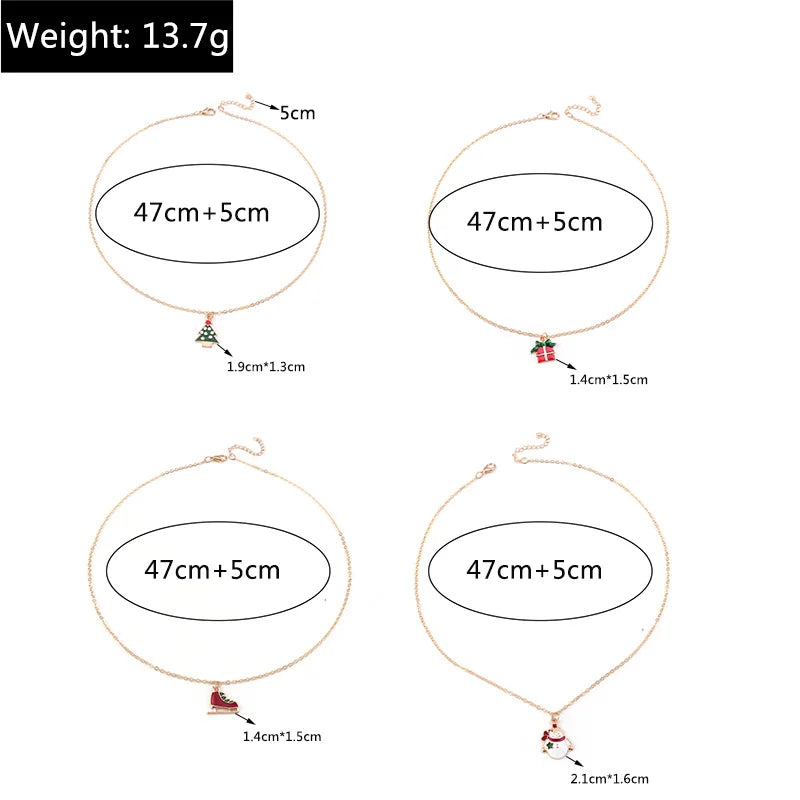 De ketting is gemaakt van duurzaam metaal dat mooi glanst en niet snel verkleurt. De lengte bedraagt ongeveer 45 cm, wat zorgt voor een perfecte pasvorm bij de meeste halslijnen. De stevige sluiting houdt de ketting veilig op zijn plaats, zelfs tijdens een drukke kerstviering. De hangertjes bewegen subtiel mee, wat zorgt voor een levendige en feestelijke uitstraling.