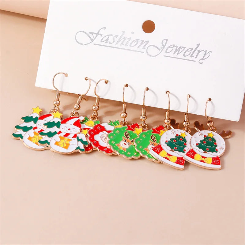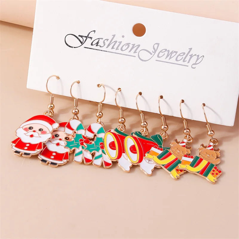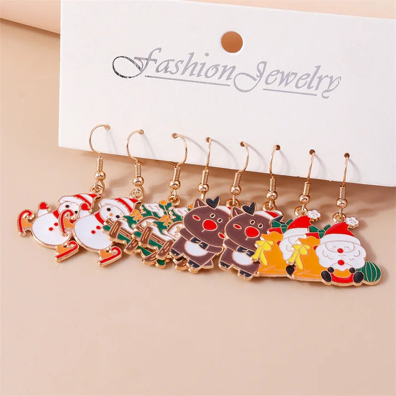 Kerst oorbellen met kerstman, rendier en sneeuwpop hangers