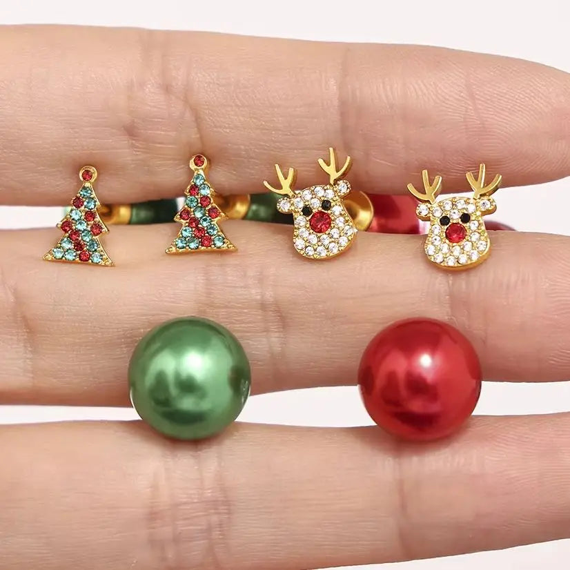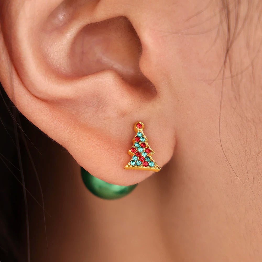 Kerst oorbellen rendier kerstboom studs met zirkonia voor dames