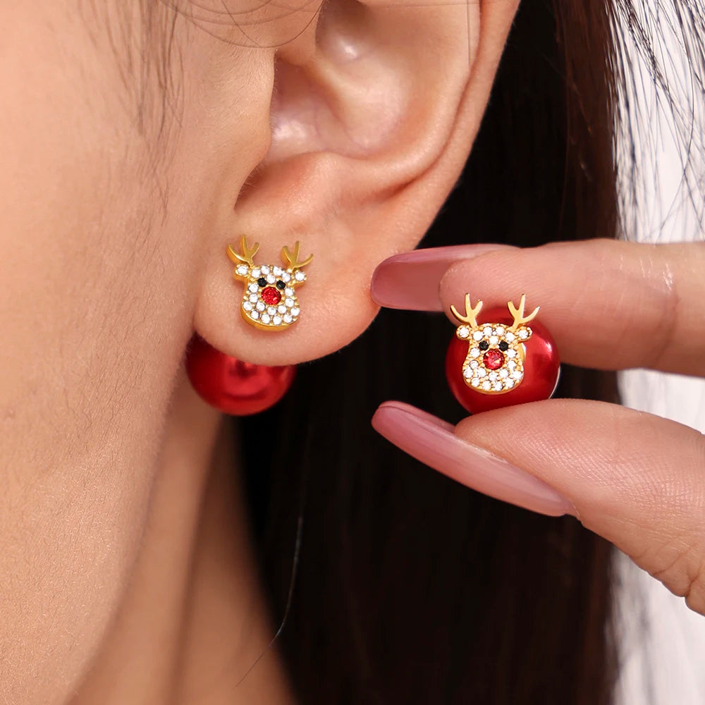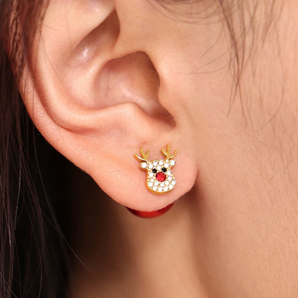 Deze schitterende kerst oorbellen in de vorm van een rendier en kerstboom geven direct een warme en vrolijke uitstraling. Met glinsterende zirkonia steentjes voegen ze extra sprankeling toe aan elke feestelijke outfit. Perfect om tijdens diners, borrels of op het werk subtiel de kerstsfeer mee te dragen.