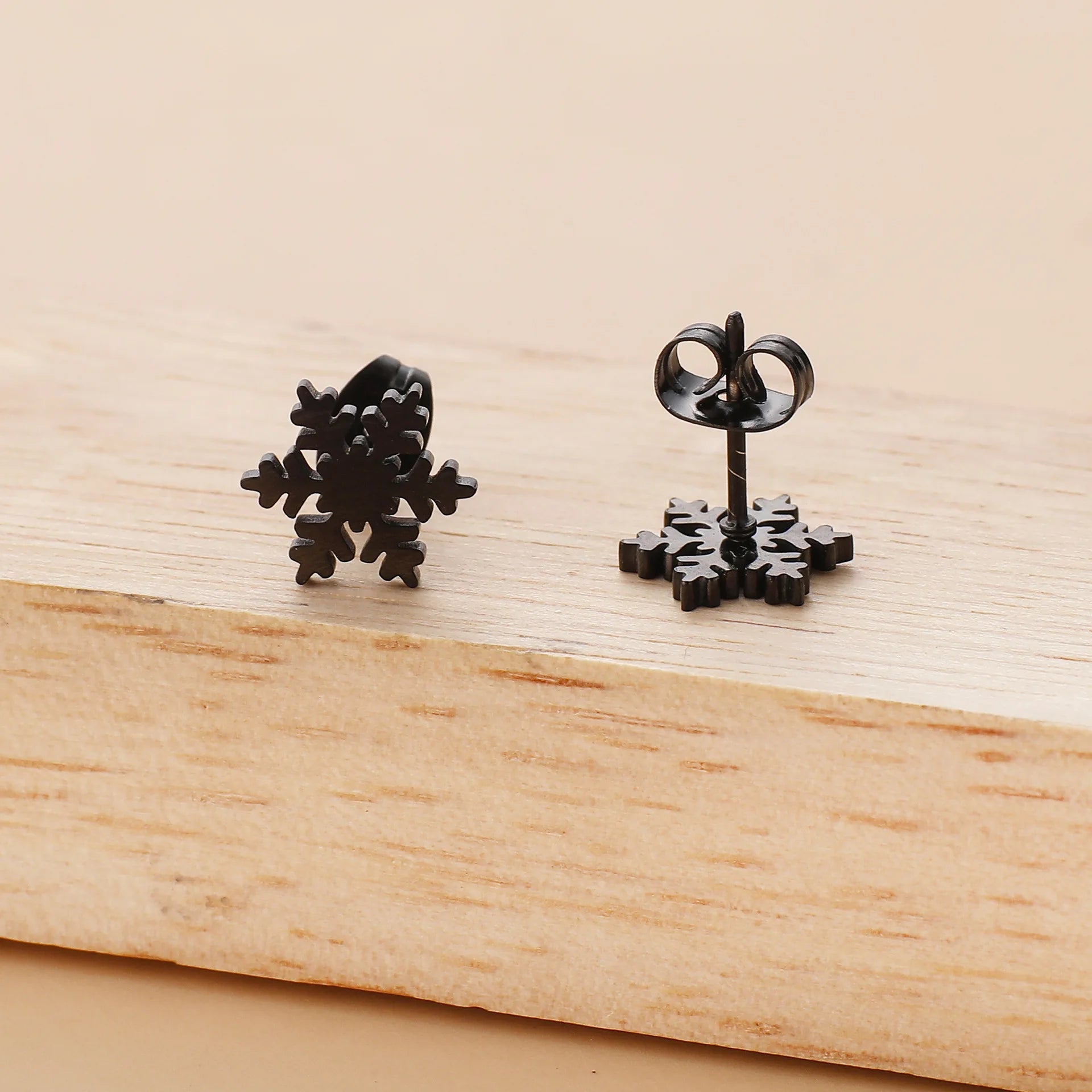 Kerst oorbellen sneeuwvlok van roestvrij staal – elegant in goud, zilver of zwart