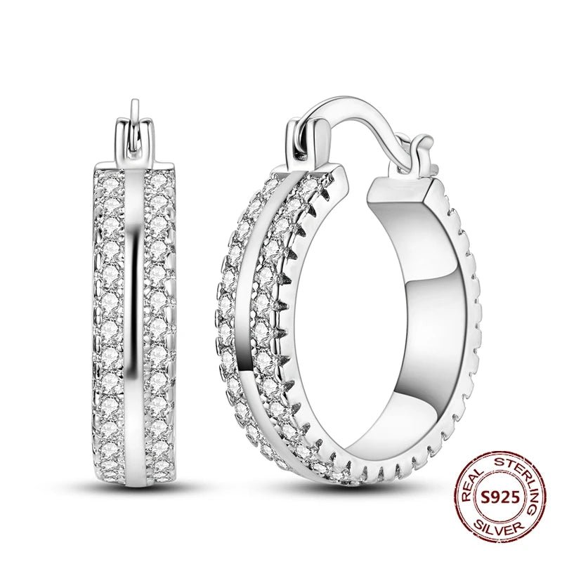 Ontdek de perfecte balans tussen elegantie en verfijning met deze drie ronde hoepel oorbellen, vervaardigd uit 925 sterling zilver en afgewerkt met schitterende zirkonia steentjes. Het unieke polycyclische ontwerp met subtiele slangenschakelstructuur zorgt voor een luxueuze uitstraling die zowel bij casual als formele gelegenheden past. De oorbellen zijn licht van gewicht en comfortabel om te dragen, waardoor ze ideaal zijn voor dagelijks gebruik. De fonkelende details geven elke outfit een tijdloze glans en maken dit sieraad tot een prachtige aanvulling op je collectie. Een stijlvol cadeau voor jezelf of een dierbare.