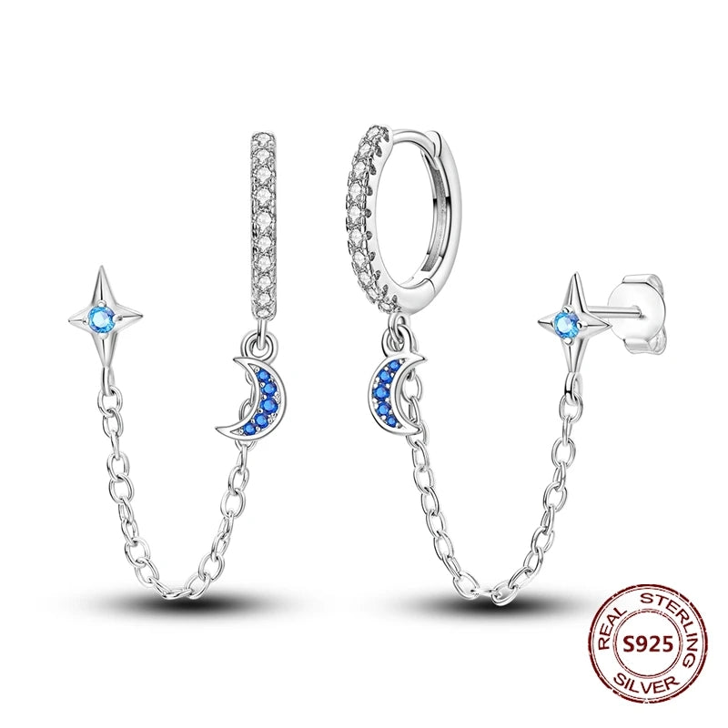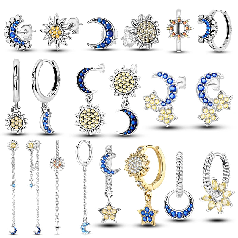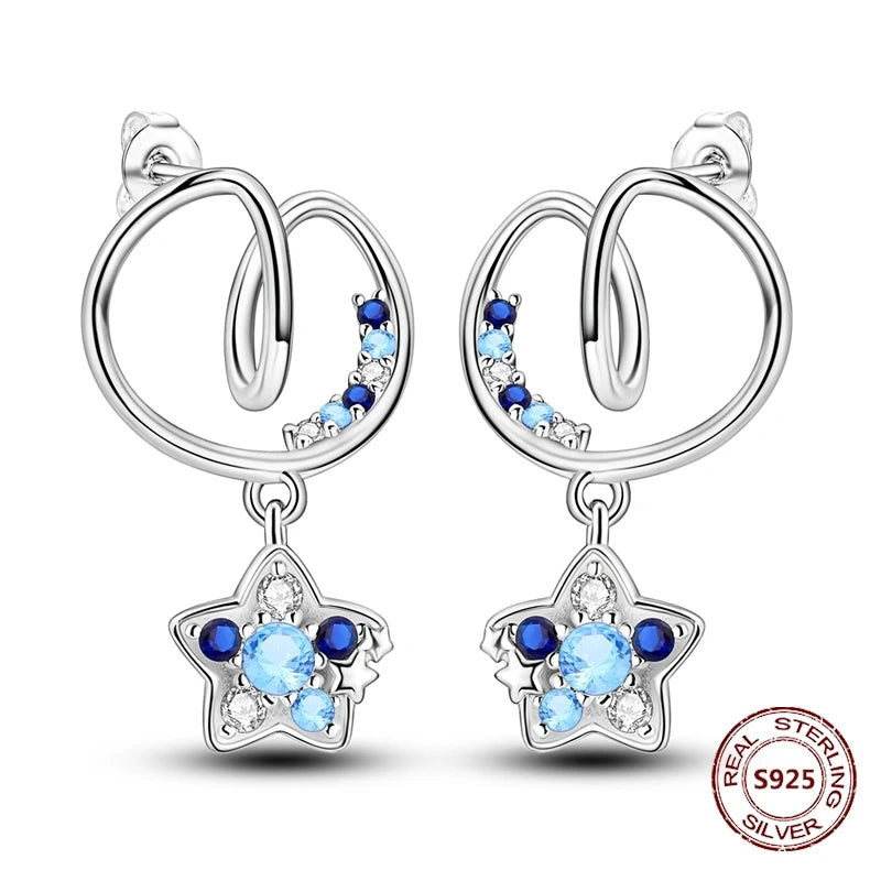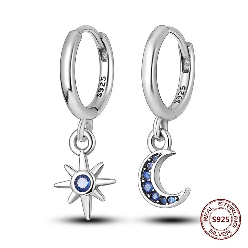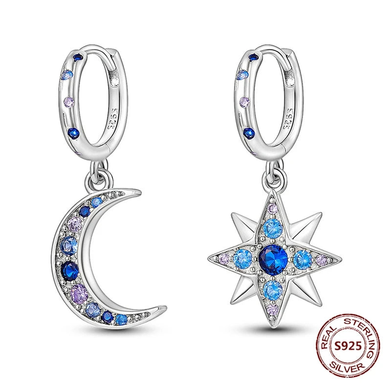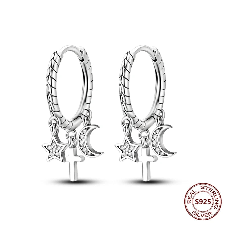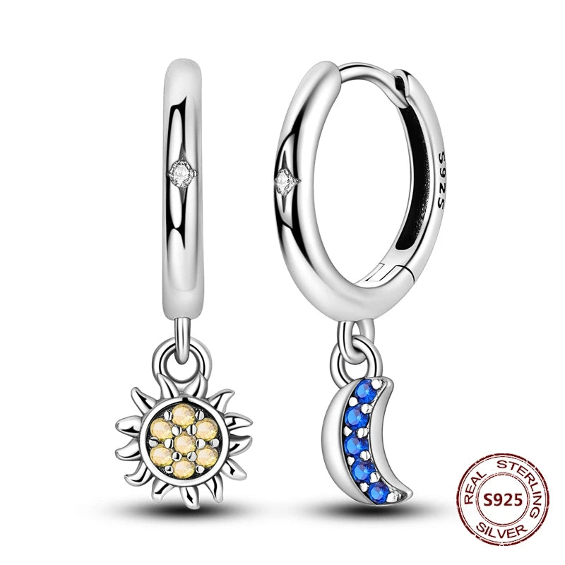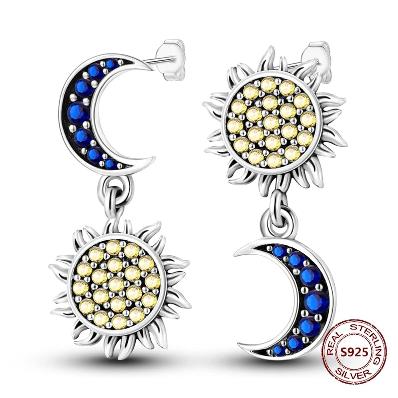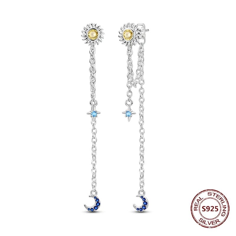 Oorbellen met Ster Maan Zon en Zirkonia Hangers – Lange Damesoorbellen