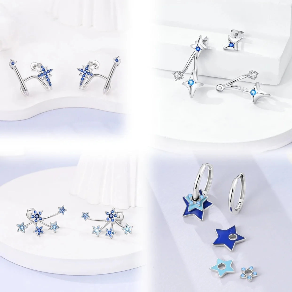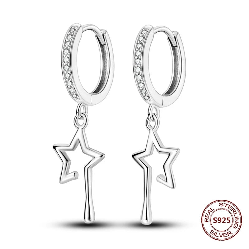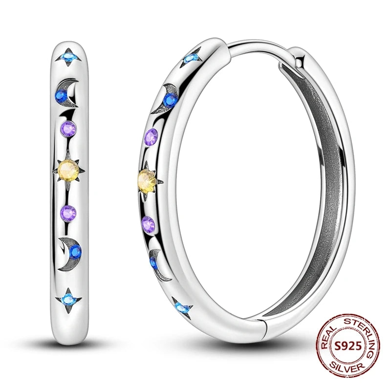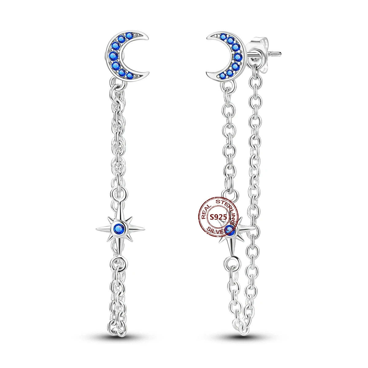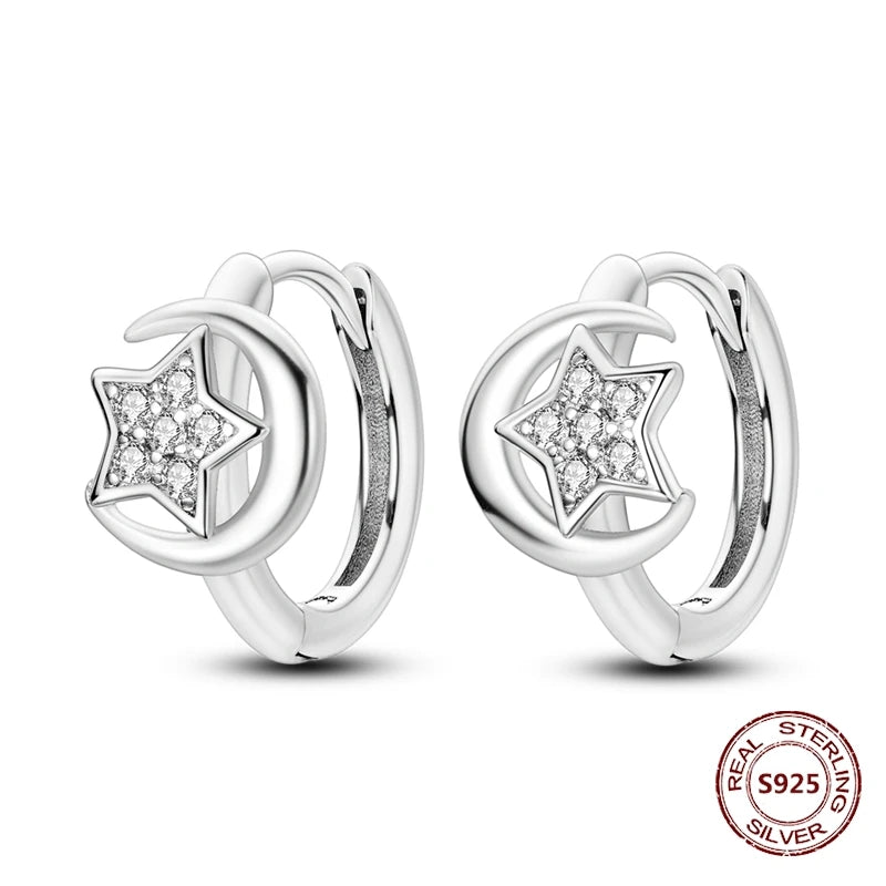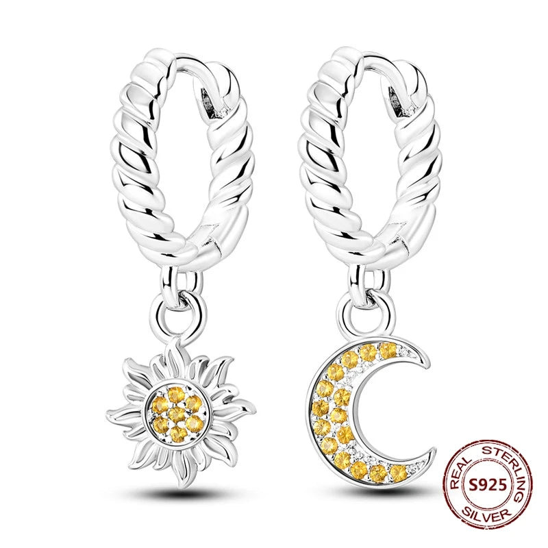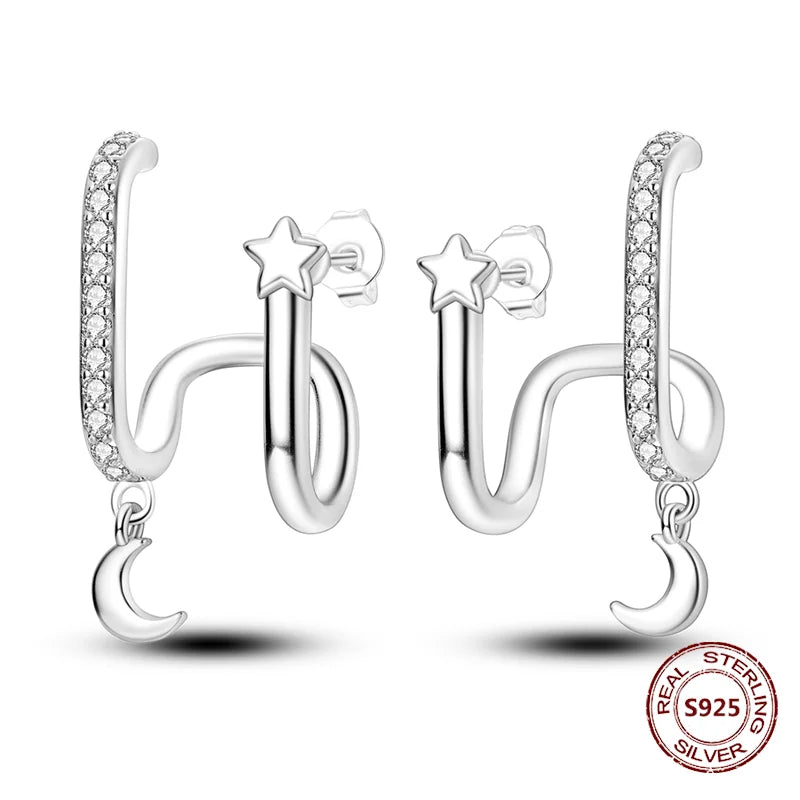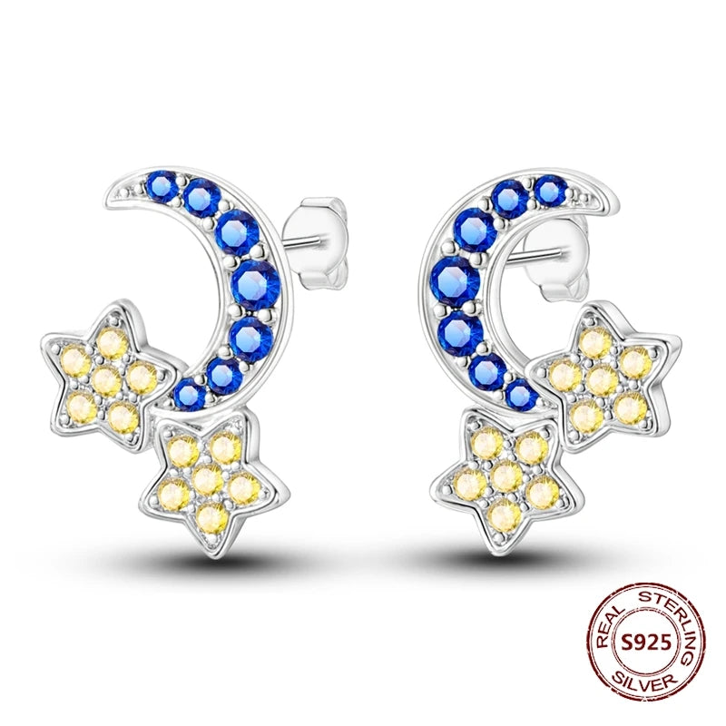Oorbellen met Ster Maan Zon en Zirkonia Hangers – Lange Damesoorbellen