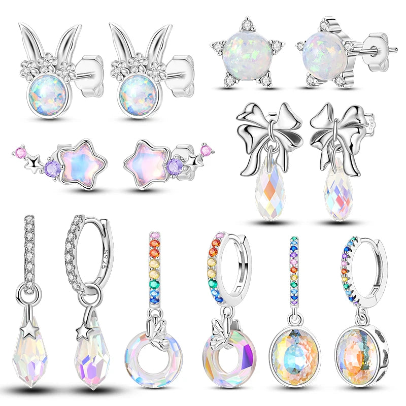 Laat je betoveren door deze elegante oorbellen met een verfijnd ontwerp van fonkelende sterren, subtiele opaalaccenten en een charmante strikvorm. Vervaardigd uit hoogwaardig 925 sterling zilver, combineren deze oorstekers tijdloze klasse met een speelse touch. De schitterende kristallen zorgen voor een sprankelend effect dat perfect is voor zowel dagelijks gebruik als bijzondere gelegenheden. De garland-achtige omlijsting met een subtiel konijntje geeft een uniek en dromerig detail aan het geheel. Een prachtig cadeau voor jezelf of een speciaal persoon – deze oorbellen stralen verfijning en vrouwelijkheid uit in elk detail.