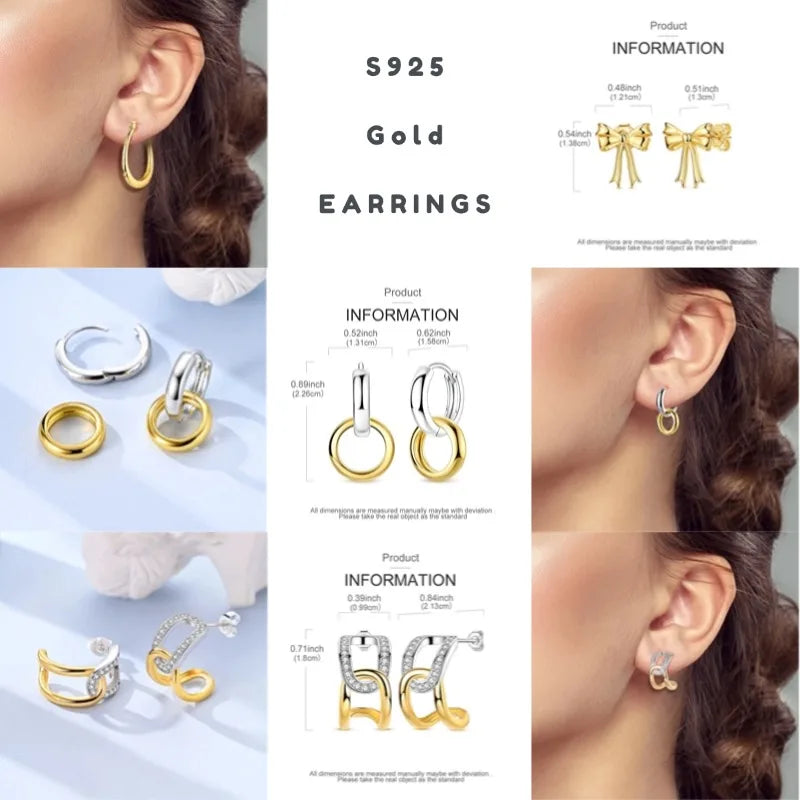 Oorbellen Strik Goudkleurig met Zirkonia en Veelzijdige Vorm