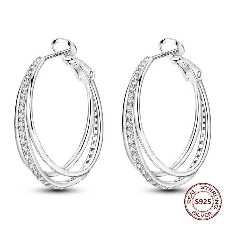 Zilveren oorbellen grote ronde hoops met zirkonia en vloeiend design
