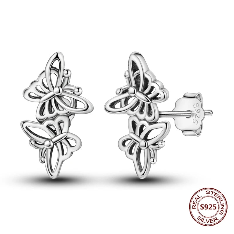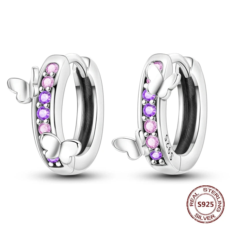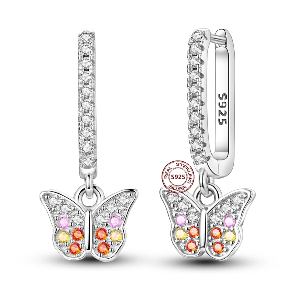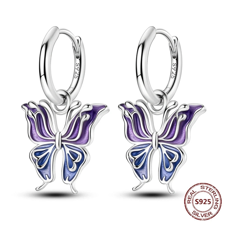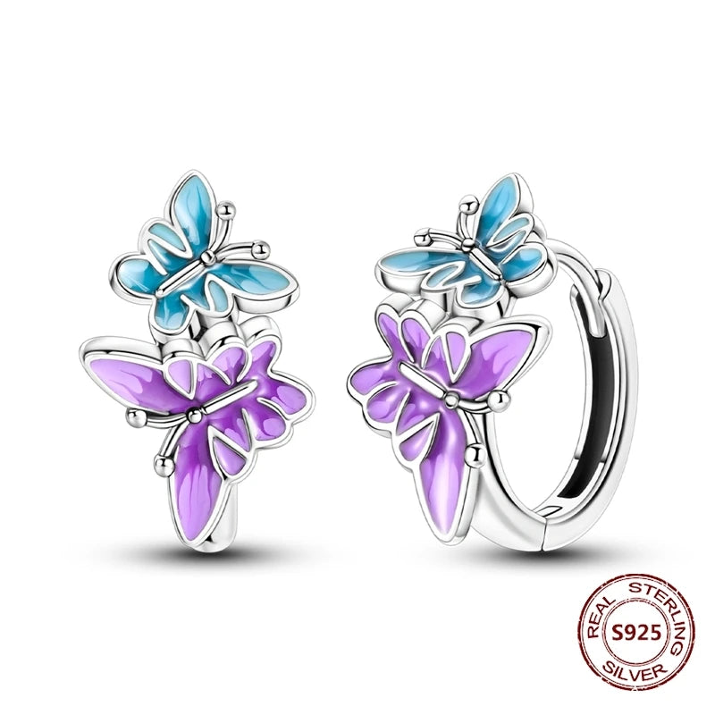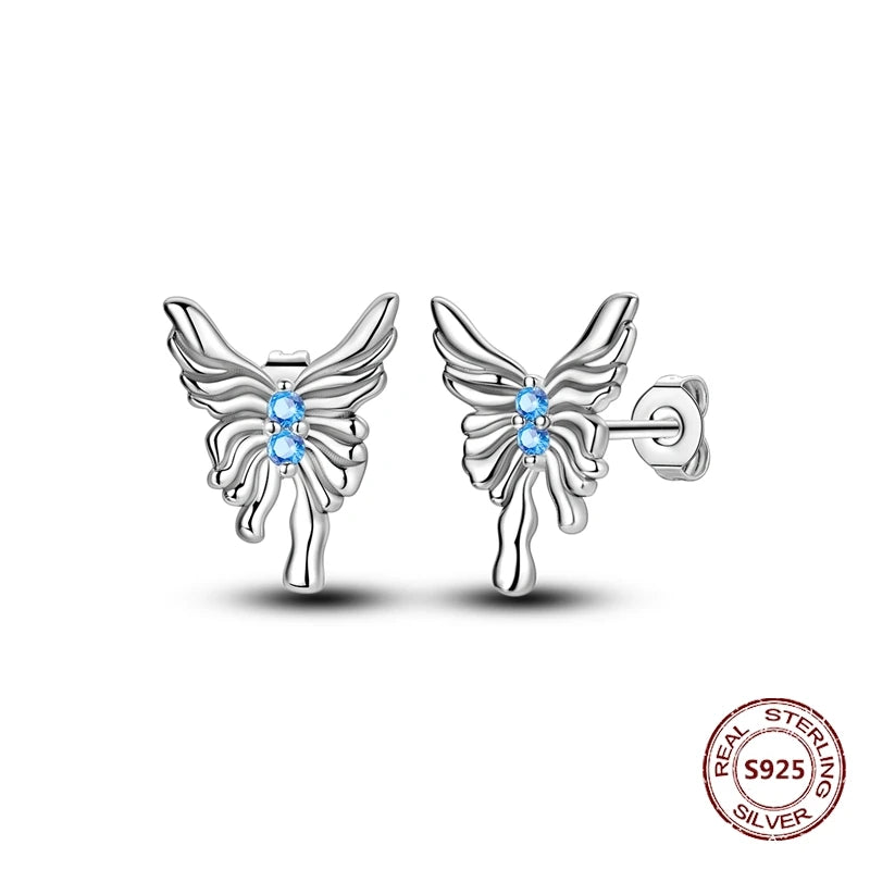 Laat je oren spreken met deze elegante zilveren oorbellen, versierd met een verfijnde blauwe vlinder en een sprankelende hanger. De zirkonia stenen vangen het licht op een manier die een subtiel aurora-effect creëert, waardoor je een magische glans draagt bij elke stap die je zet.