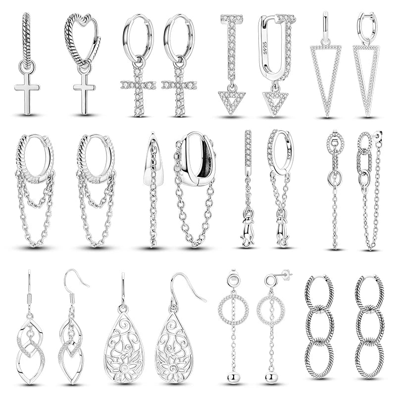 Deze zilveren oorbellen zijn een echte eyecatcher dankzij hun verfijnde ontwerp met lange kettingdetails en een uniek geometrisch kruisaccent. De elegante, slanke vorm in combinatie met het subtiele slangpatroon geeft een tijdloze uitstraling die zowel modern als klassiek oogt. Perfect voor vrouwen die houden van stijlvolle sieraden met karakter. De oorbellen bewegen sierlijk mee en passen prachtig bij zowel een casual als een feestelijke outfit. Ideaal als cadeau voor een geliefde of als verwennerij voor jezelf. Voeg een vleugje elegantie toe aan je sieradencollectie met dit opvallende paar.